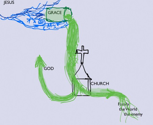 Grace Works is not an attempt to make a works based religion in the place of God’s economy of election and faith; however, a faith that produces no works is dead (James 2:26). The picture (beside/below) depicts this flow of grace. All grace is God’s grace as he is the source of all good things. God’s grace flows into the church and this grace flows into your family and continues into your relationship with the world and finally, will flow against our enemy. If the grace given to us accomplishes all that is intended in these relationships, then it will empower us to return grace back to God in the form of a life of worship and a healthy Church.